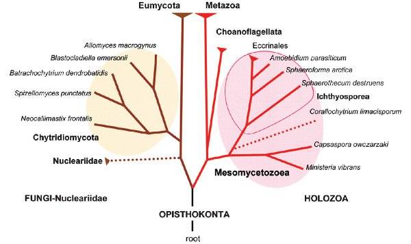 На рисунке ниже показана классификация опистоконт в виде эволюционного дерева (2009 г.).