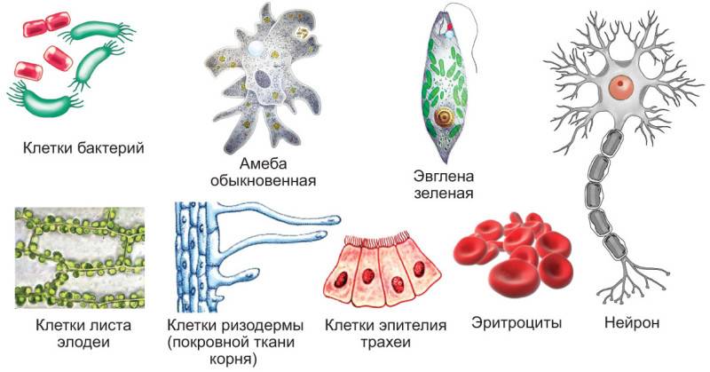 Подавляющее большинство известных на сегодняшний день живых организмов (растения, животные, грибы и бактерии) имеет клеточное строение. Форма клеток может быть округлой, цилиндрической, кубической, призматической, дисковидной, веретеновидной, звездчатой и др.