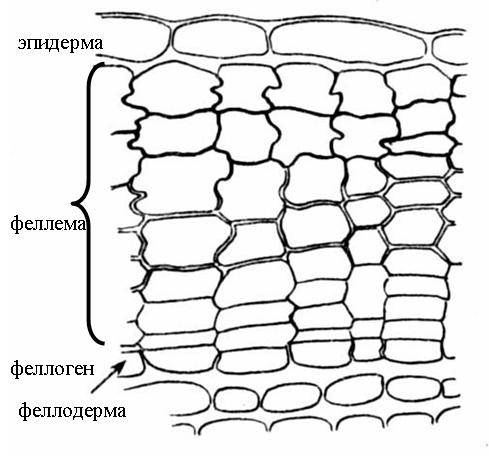 Рисунок 3: Феллема, феллоген, феллодерма.