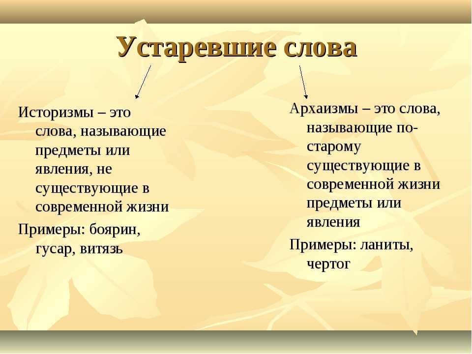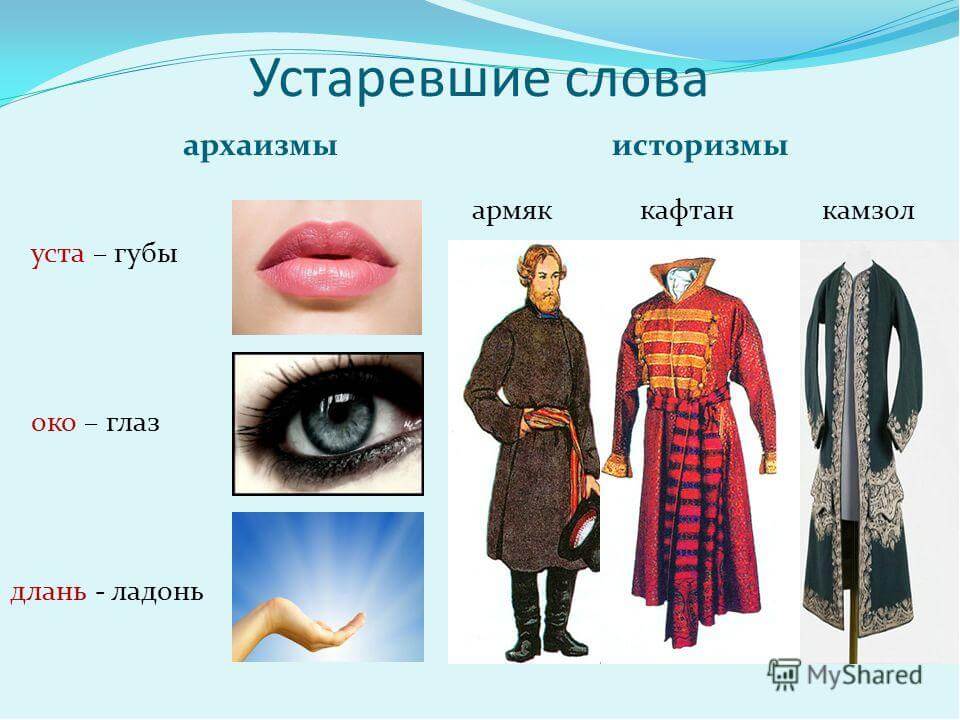 Примеры слов-историзмов и архаизмов в русском языке и их значения