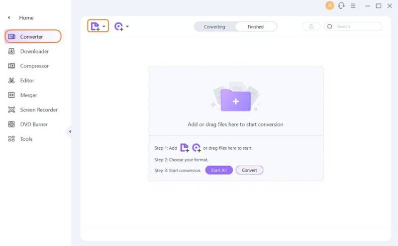 Open Wondershare UniConverter on your PC/Mac. On the primary software interface, under the Converter tab, click the +Add Files button to browse and add the desired AVCHD/MP4 from the computer. You can also drag and drop the files.