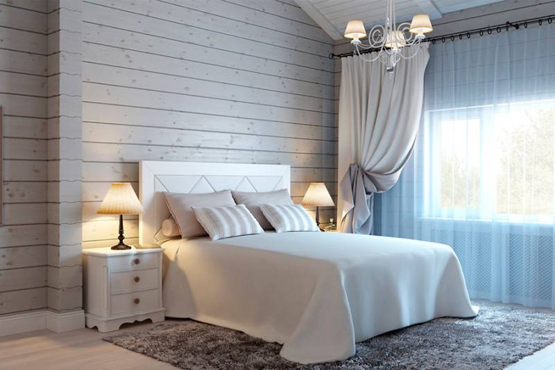 Интерьер с доской натурального тона в спальне с белой мебелью смотрится свежо и останется актуальным на долгие годы.