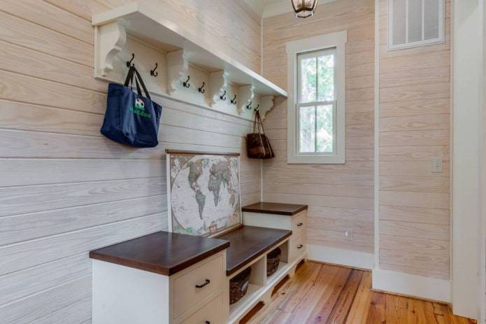В панельных домах коридоры зачастую узкие и неудобные; горизонтальная обшивка коротких стен увеличит пространство и сделает его более приятным. На длинных стенах прикрепите рейки вертикально или по диагонали. Интересно смотрятся панно: например, из досок можно создать очертания горных вершин или городской пейзаж.