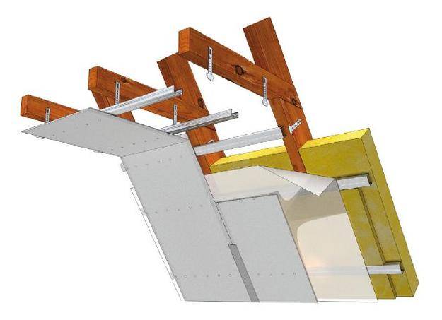 Вопросы по гипсокартонным конструкциям возникают также при обработке скатных кровель. При обшивке мансарды гипсокартоном присутствует риск деформации стропил под воздействием снежных сугробов или сильного ветра.