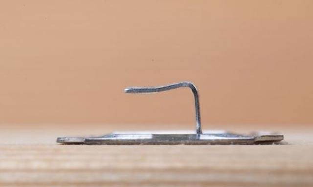 Подбор скоб осуществляется по толщине панелей. Существуют различные кляймеры, которые классифицируются по высоте подъема язычка – отступа, в который устанавливается лист вагонки. Это скрытое крепление идеально подходит для установки парной вагонки в бане или жилых помещениях.