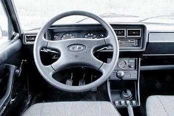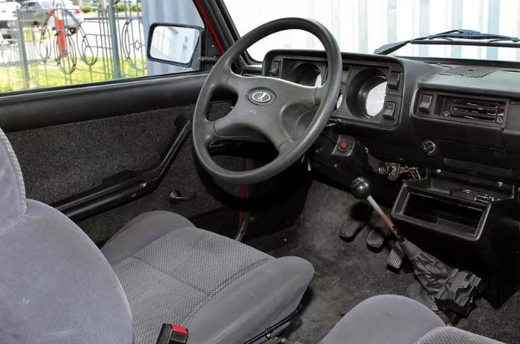 - Спартанское исполнение салона. Автомобиль рассчитан на непритязательного водителя, которому достаточно сиденья и руля. Ни о каких излишествах в виде электрических стеклоподъёмников, усилителя руля и прочих радостях современного авто не может быть и речи. Рулевая колонка не регулируется, боковая поддержка на сиденьях отсутствует вовсе. Даже привычный ныне на универсалах и хэтчбеках стеклоочиститель задней двери вошёл в базовую комплектацию не сразу.