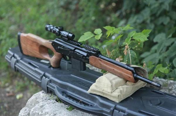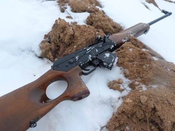 Этот вариант гражданского автомата Калашникова появился по некоторым данным на свет в конце 90-х годов на Ижевском механическом заводе. Его принцип работы основан на перезарядки с помощью энергии от пороховых газов, которые попадают через специальное отверстие в стволе и приводят в движение затвор.