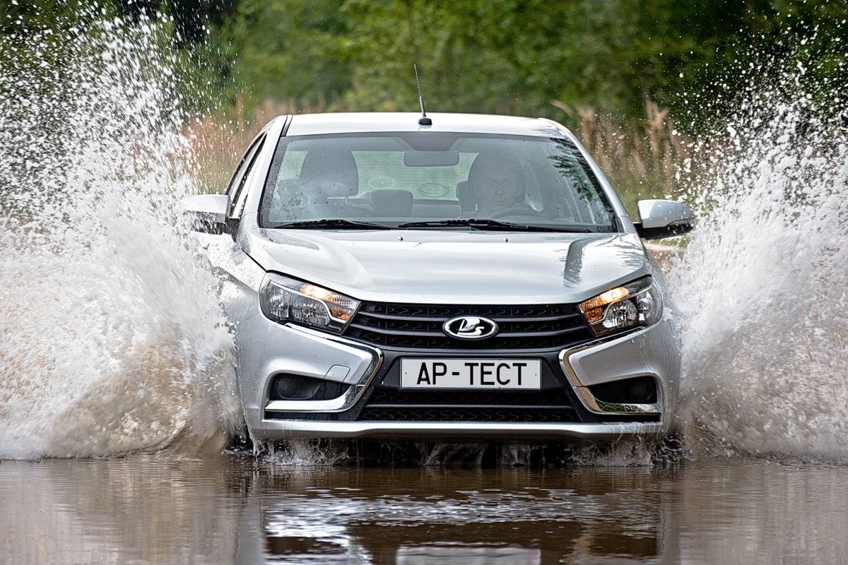 Из-за того что Веста охотно выплескивает воду из-под колес на лобовое стекло и в моторный отсек, скоростного форсирования глубоких луж лучше избегать. Особенно аккуратными следует быть обладателям машин с АМТ: влага попадает в плохо защищенные разъемы датчиков на коробке — и электроника может выдать ошибку