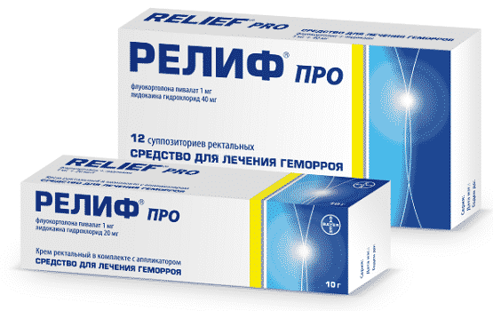 Форма «Про» выпускается в двух видах — свечи 12 штук и ректальный крем объёмом 10 г. В отличие от своих сотоварищей по линейке, «Релиф Про» — рецептурный препарат.