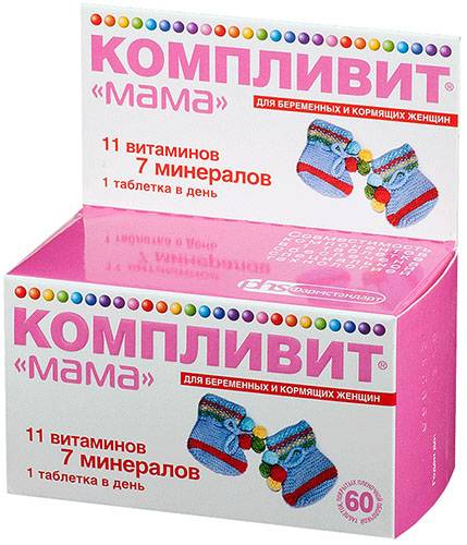 Фемибион | Выпускающийся в России препарат, предназначенный для беременных (начиная с 13 недели) и кормящих грудью женщин. Содержит йод и витамины, необходимые для нормального развития ребенка и поддержания здоровья матери. При необходимости может стать доступной альтернативой препаратов компливит мама или компливит триместрум (2, 3). |
