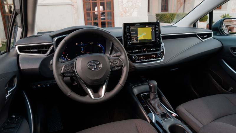 Если сравнить два автомобиля, то Toyota Corolla явно будет проигрывать по внутреннему оформлению. Узкая передняя панель, извилистый паз рычага автоматической трaнcмиссии и тонкие центральные дефлекторы говорят о том, что Corolla принадлежит к классу бюджетных автомобилей. Хотя с ними соседствуют и очень красивые элементы: крупный сенсорный дисплей мультимедийной системы, приборы с мягкой подсветкой, а также жидкокристаллический индикатор климат-контроля. Трёхспицевый руль Toyota Corolla выглядит достаточно массивно, однако на пpaктике он оказывается очень удобным. В подлокотнике между передними сидениями Corolla скрывается достаточно глубокий бокс, в который можно положить не только мелкие вещи, но и сложенные пополам бумаги А4, тогда как в перчаточный ящик они помещаются целиком.