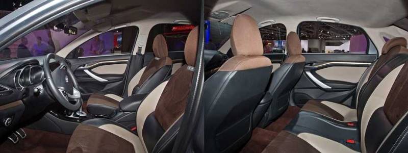 Облик российского автомобиля смотрится весьма агрессивно, чувствуется некое влияние спортивного стиля. Впереди машина имеет плавные линии, сходящиеся в форме символа X, и эта находка у дизайнеров очень удалась, она отражает особенный характер машины, сочетающийся с модной внешностью. Рельефные выемки слева и справа тоже формируют фигуру в виде символа X. Колесные диски также смотрятся стильно, отлично дополняя общий вид машины.