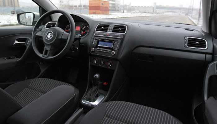 Сиденья у Фольксваген Поло с глубоким профилем, обеспечивается дополнительный комфорт. Обзор отличный, хотя остекление занимает меньшую площадь. Поло имеет более узкую колёсную базу, поэтому пространство салона несколько компактнее. И если спереди относительно просторно, то сзади трём пассажирам среднего телосложения будет тесно. Подобный интерьер может показаться скучным и слишком пресным, но покупателей таких моделей устраивает дизайн и особенности внутреннего пространства.