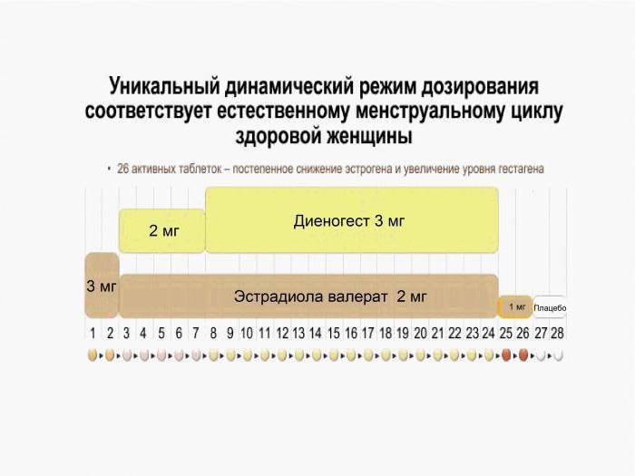 Абсорбция. После проведения перорального приема этот элемент быстро и при этом почти полностью всасывается. Сmax в сыворотке крови достигает показателя 90.5 нг/мл примерно через час после того как принимается таблетка (в ней содержится 3 мг диеногеста и 2 мг эстрадиола вариата). Биодоступность в данном случае достигает показателя в 91%. Стоит отметить, что фармакокинетика диеногеста в диапазоне дозировки от 1 до 8 мг характеризуется непосредственной зависимостью от дозы. Если препарат используется одновременно с приемом пищи, это не вызывает никакого клинически значимого влияния на степень или же скорость всасывания данного элемента.