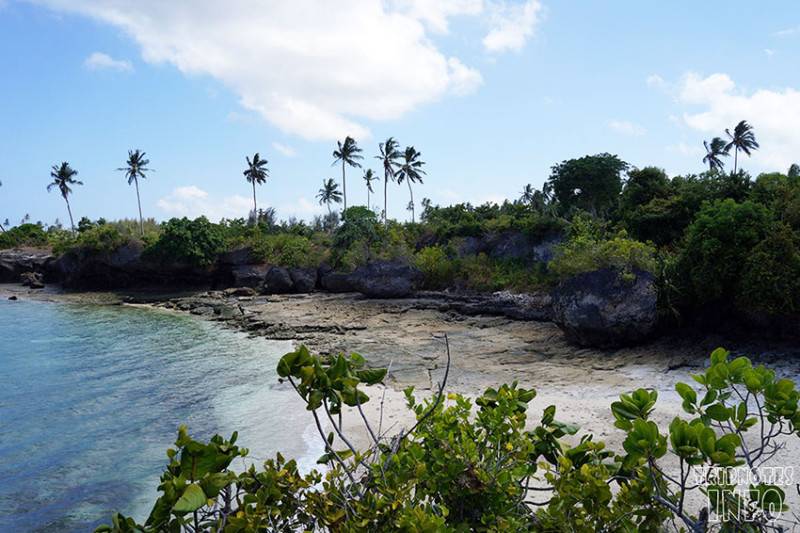Морское дно выложено плитами из кораллов. Нужно быть аккуратными — можно наступить на острые камни! Чуть в стороне от берега начинаются заросли водорослей, поэтому во время приливов часть водорослей выносит на пляж. Советуем купаться в тапочках!
