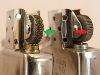 - Колесико-кресало. На поверхности этой детали должны быть насечки под углом 30 градусов. Ровные полоски-насечки свидетельствуют о фейковости изделия, как и заклепки желтого цвета на колесе и кулачке.