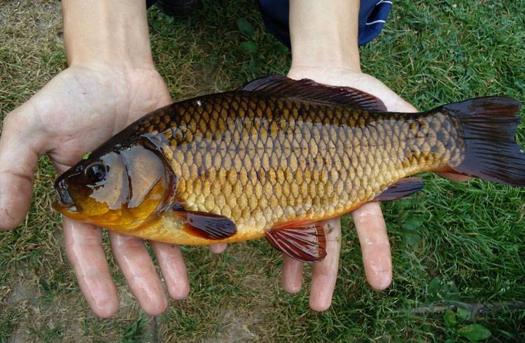 Они же карась обыкновенный, по ареалу распространения схож со своим серебряным собратом, но его численность в разы меньше. Свое название получил из-за характерного окраса чешуи. Отличительным признаком золотого карася являются плавники темно-коричневого оттенка.