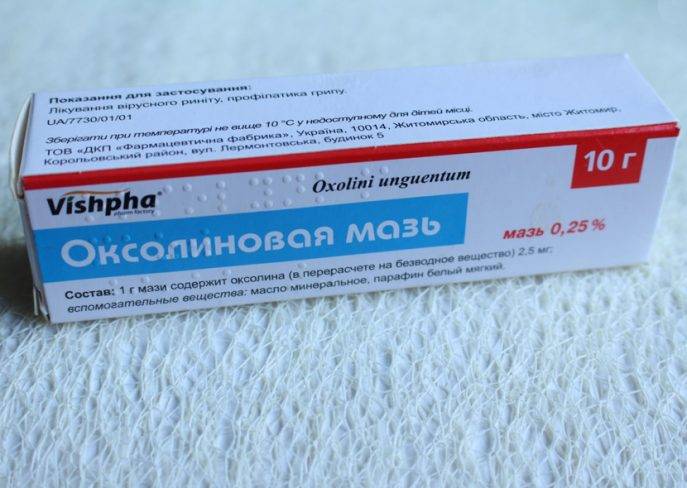 - Оксолиновая мазь – противовоспалительный, противовирусный препарат для кожи и слизистой, хорошая переносимость и отсутствие противопоказаний.